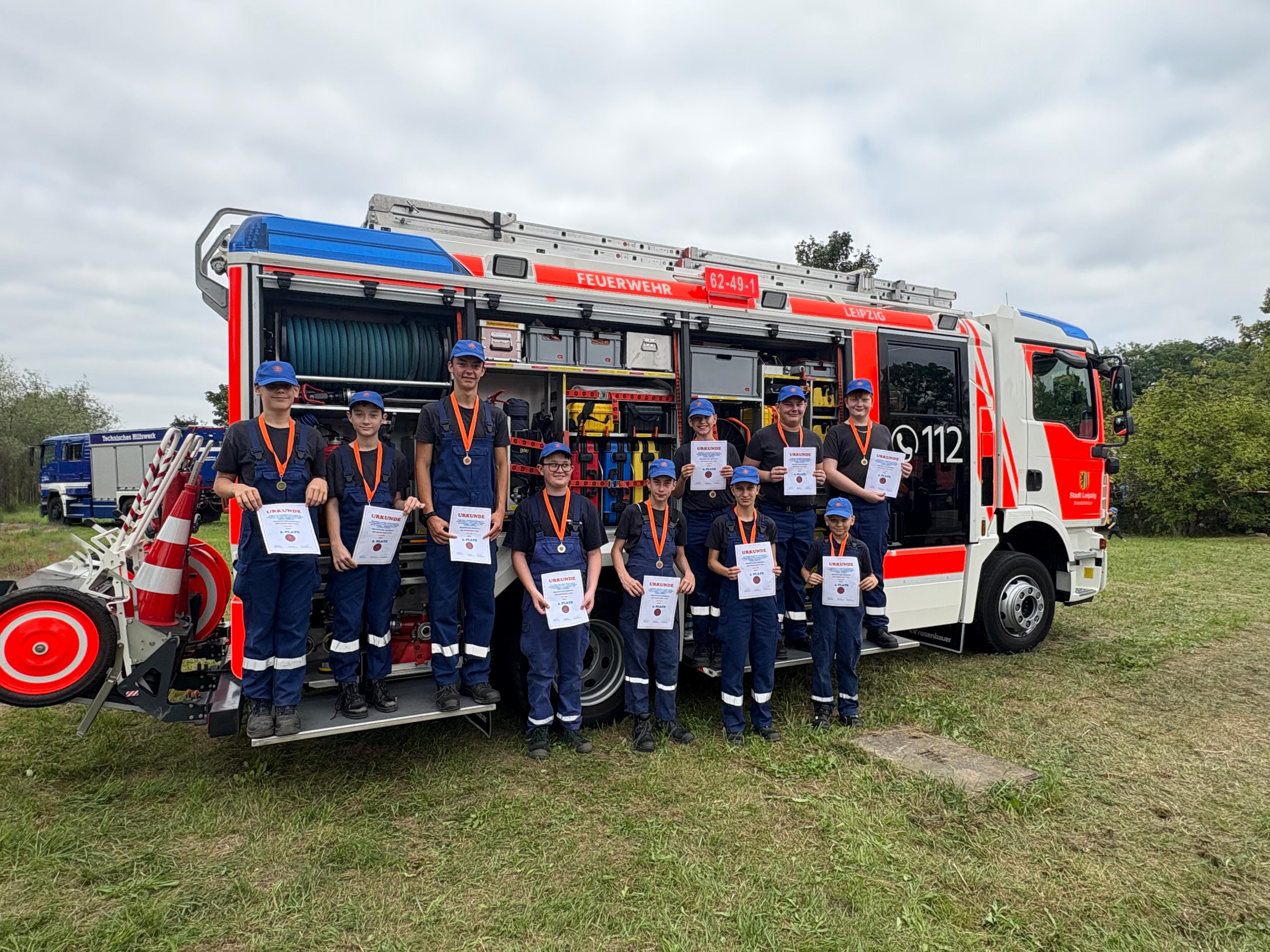 Am Samstag, den 31.08.2024 brach unsere Jugendfeuerwehr gegen 8 Uhr auf in Richtung Lützschena-Stahmeln. Dort fand an diesem Tag im Rahmen des 125-jährigen Jubiläum der Freiwilligen Feuerwehr Leipzig Lützschena – Stahmeln ein Wettkampf statt. Bewertet wurde die Disziplin ,,Löschangriff nass‘‘.